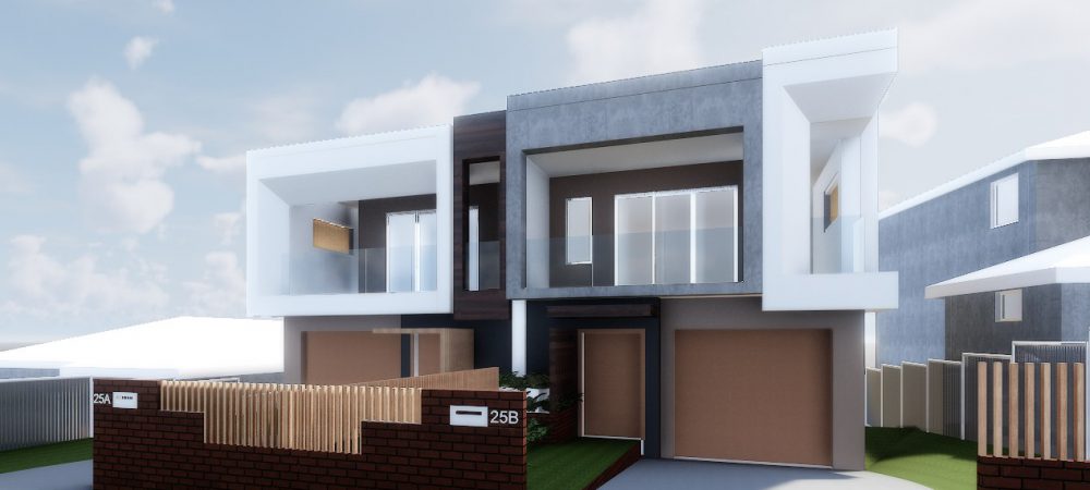 The Dundas Valley duplex is located in a quiet neighbourhood. This project has been approved and the proposed development is demolition of existing house and erection of a dual occupancy. Subject site has one street frontage on the South and falls towards the North. There site is densely vegetated near the shared boundary with the neighbouring property.